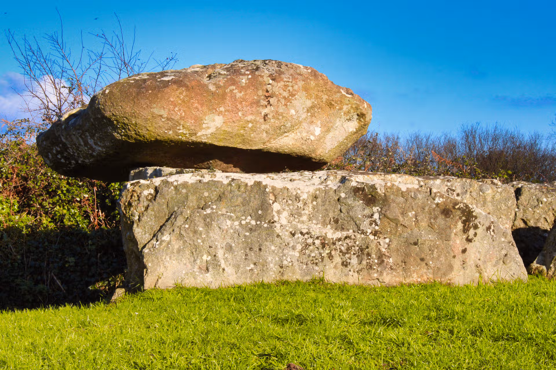 Ce monument funéraire du Néolithique appartient à la grande famille des dolmens : une architecture simple en apparence — de lourdes dalles dressées supportant une table monumentale — mais qui témoigne d’un savoir-faire remarquable. Chaque bloc, marqué par les lichens et le temps, raconte l’effort collectif des communautés qui vivaient ici bien avant nous.