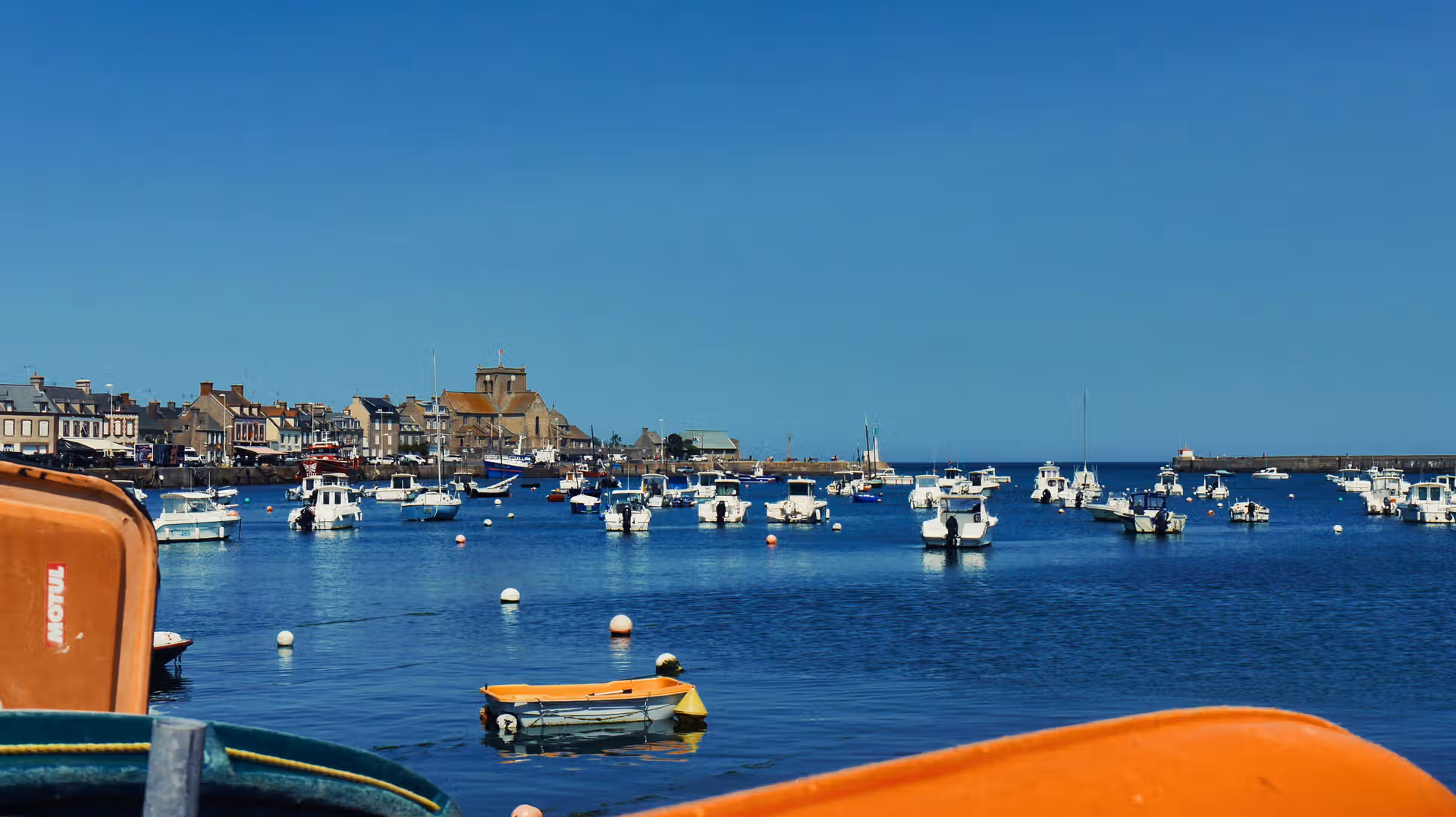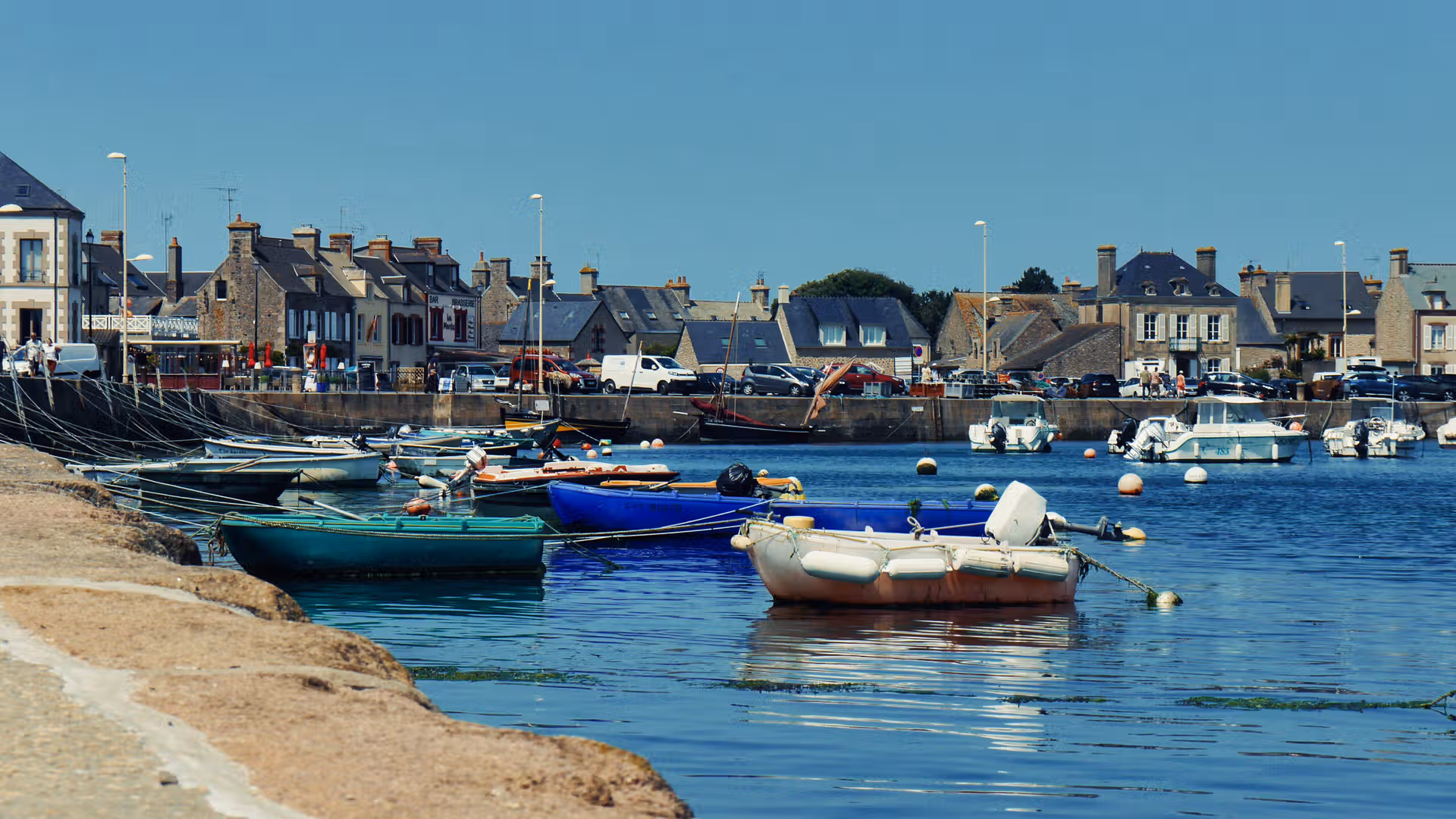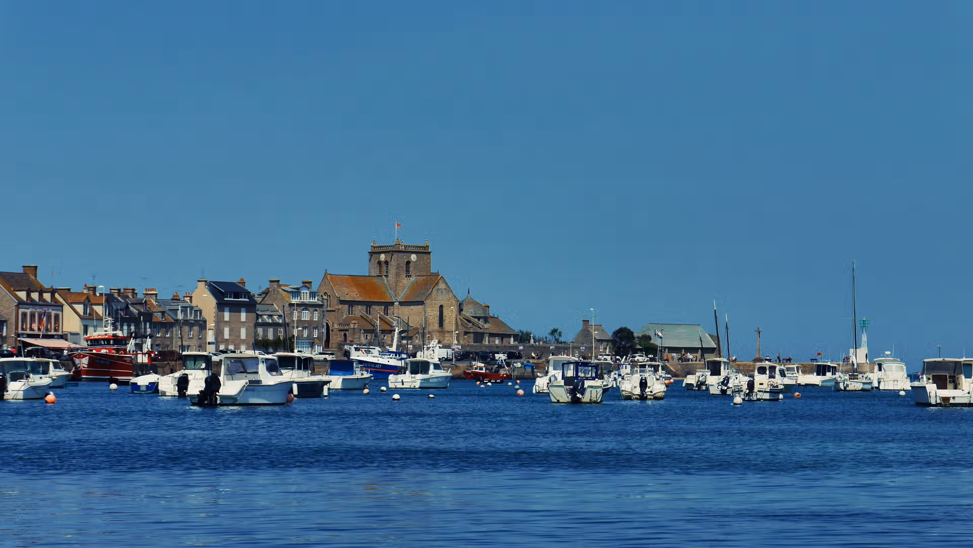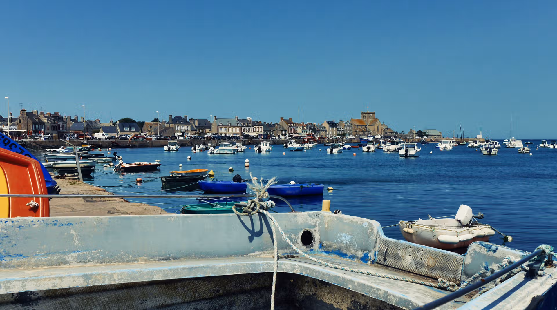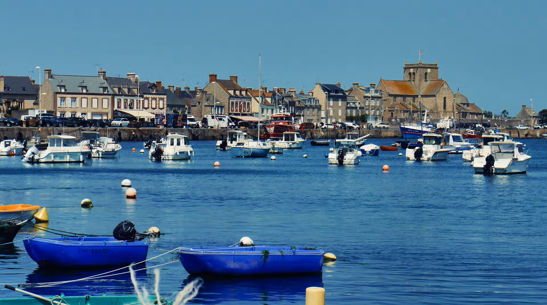 Le cœur de Barfleur bat autour de son port. Les maisons de granit alignées face à la mer semblent garder l’histoire des marins, tandis que les bateaux de pêche et de plaisance apportent des touches de couleurs vives. Rouge, bleu, blanc : une palette naturelle qui anime ce décor authentique. On observe les allées et venues, la vie quotidienne, les discussions sur le quai, ce rythme propre aux villages tournés vers l’océan.