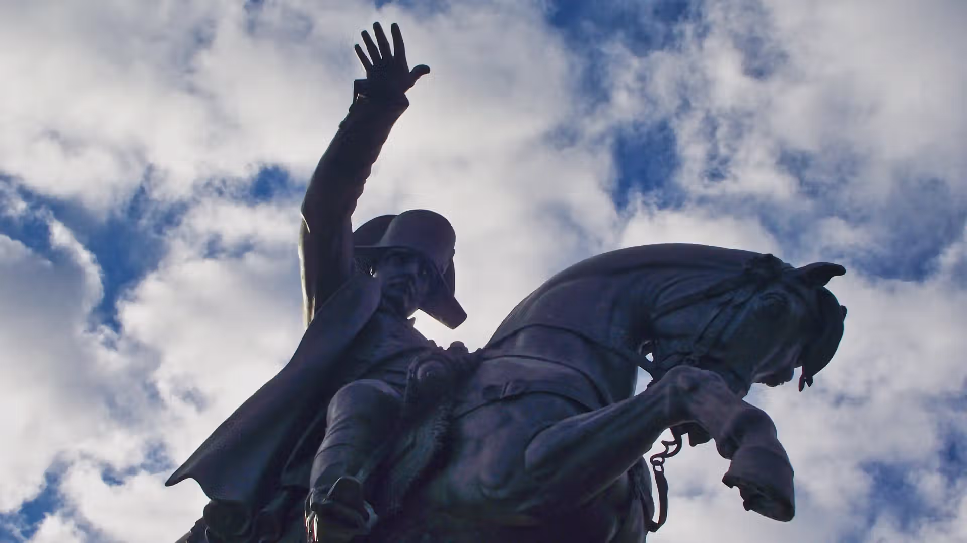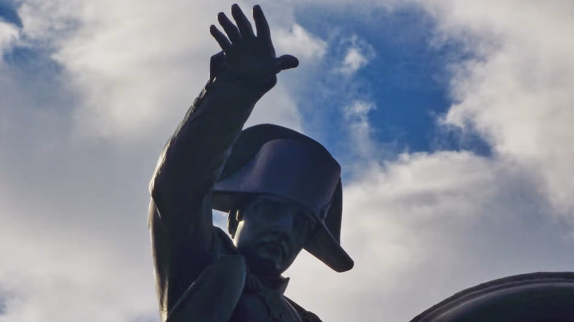 Photographiée en septembre 2020, cette sculpture révèle différentes facettes selon l’angle et la lumière. Sous un ciel chargé de nuages, la silhouette sombre de la statue se détache avec force et confère à l’image une dimension presque dramatique. À d’autres moments, les plantes et les fleurs du square environnant encadrent la scène et apportent un contraste végétal inattendu à la puissance du monument.